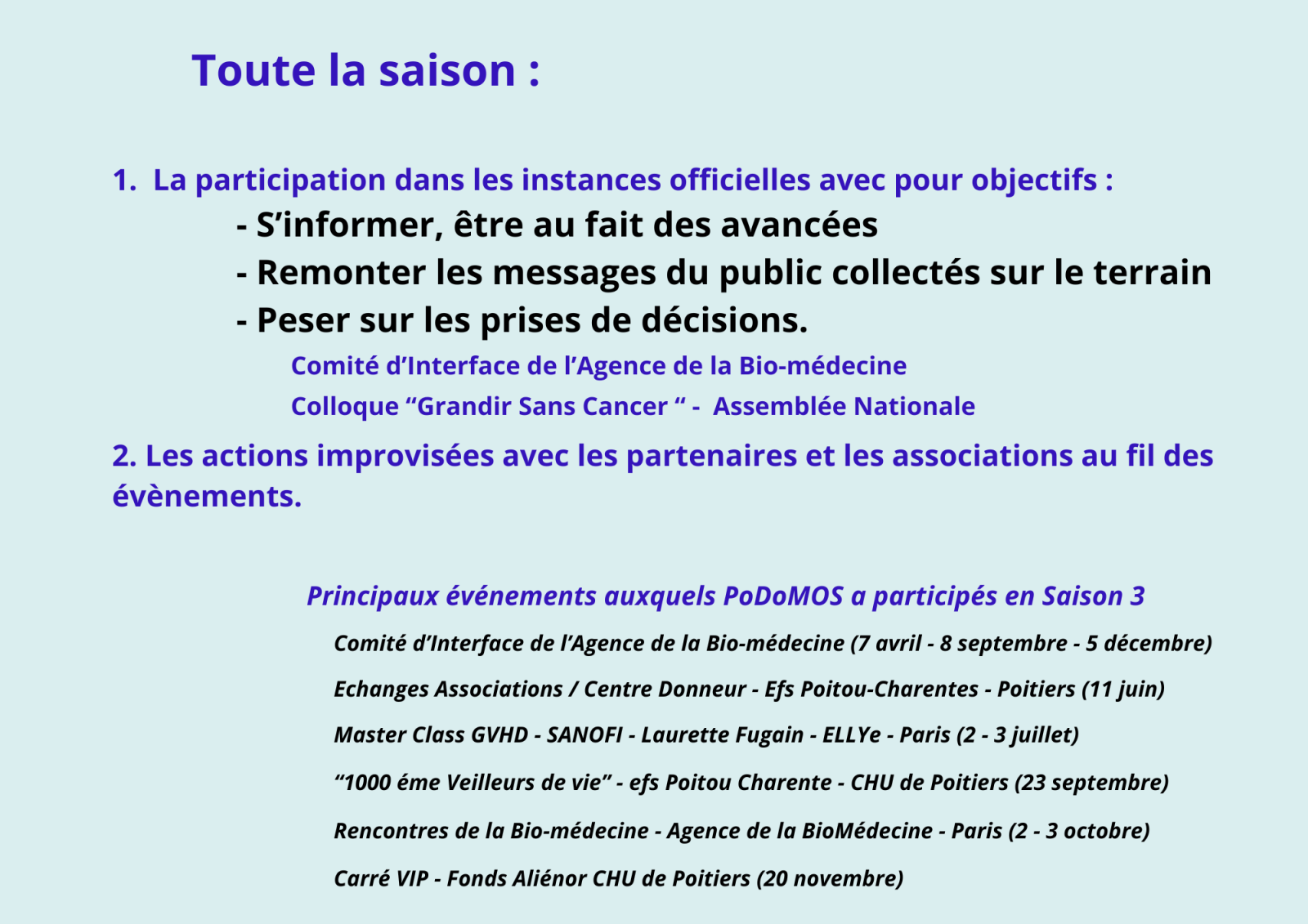 L'implication dans les instances décisionnelles et à chaque fois que possible dans tout rassemblement ou action avec les autres associations du secteur auquel il sera possible de s'intégrer au cours de la saison.